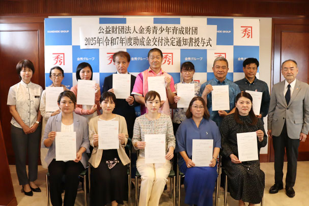 金秀グループの創業の地である西原町の人材育成に役立ててほしいと、毎年西原町へ100万円を寄付。創業40 周年を記念しスタートしてから、これまでの総額は3,500万円以上になりました。